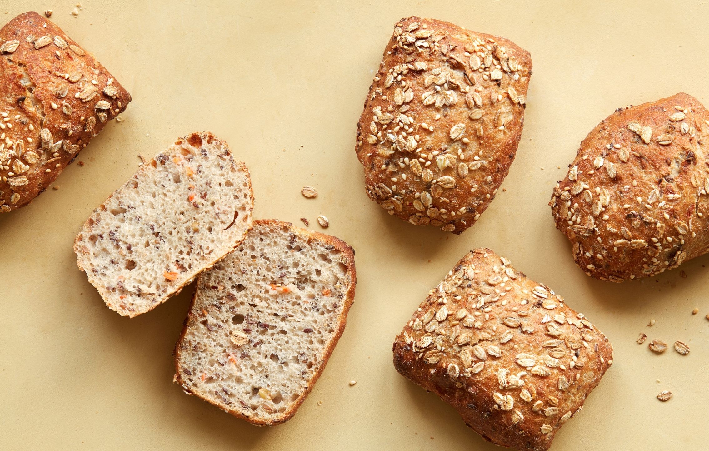 En saftig og smagfuld bolle fuld af karakter. Groftrevne stykker af gulerod tilfører naturlig sødme og fugtighed, mens en blanding af hørfrø, rugkerner og durumkerner giver både bid og dybde. Bagt med fuldkornshvedesurdej, som sikrer en sej og elastisk krumme samt en fyldig, let syrlig smag. Bollen er toppet med et dekorativt drys af sesamfrø og valset rug, som rister let under bagningen og giver en sprød og indbydende overflade.