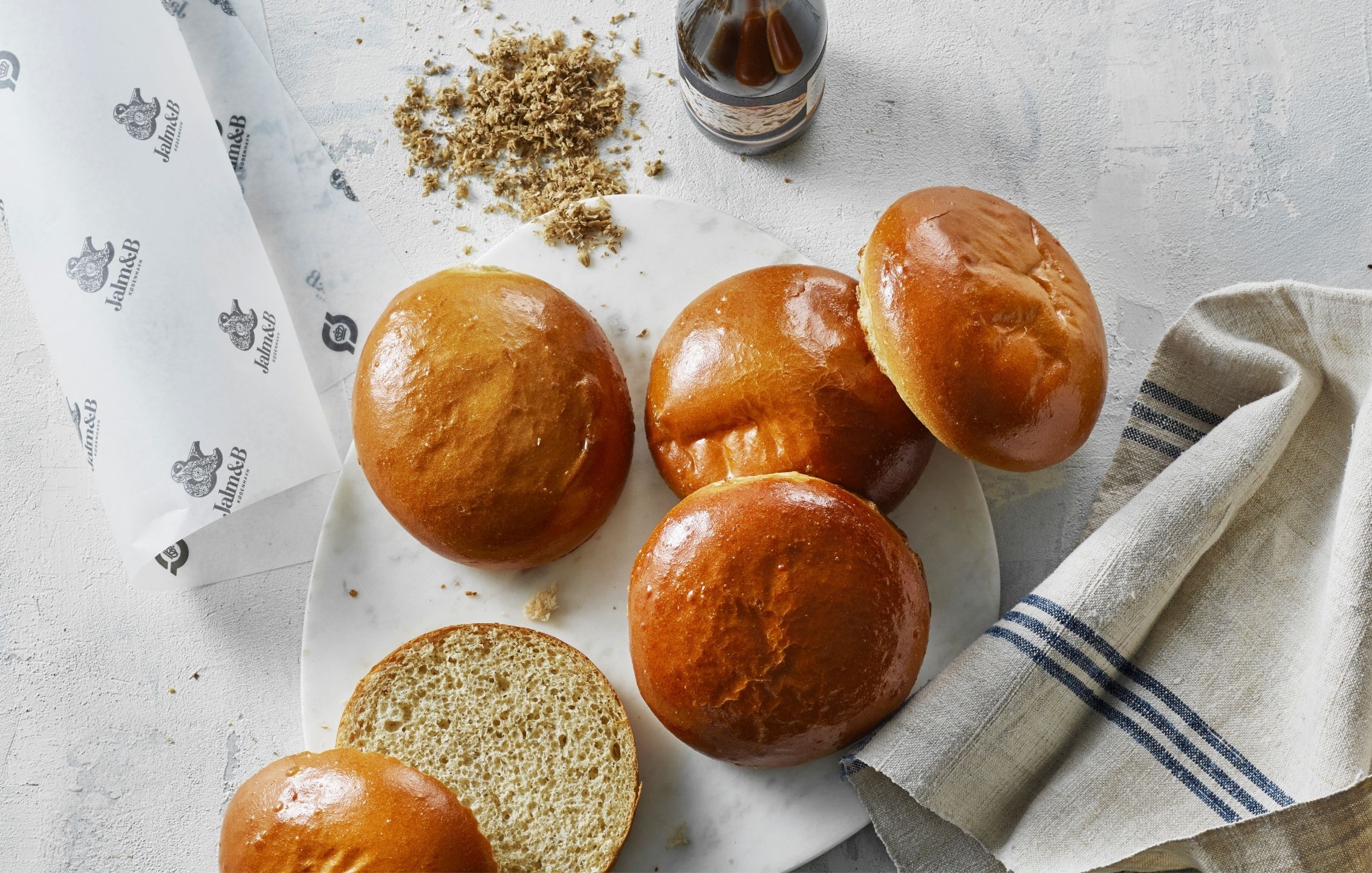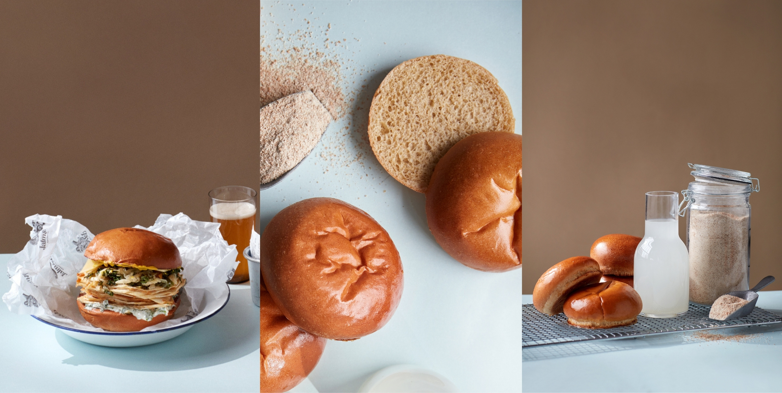 En blød og umamifyldt burgerbolle lavet med IPA-maskmel fra Agrain, som indsamler overskydende mask fra økologiske bryggere, bl.a. Nørrebro Bryghus og Amager Bryghus) og vandet i burgerbollen er erstattet med overskydende fermentat fra Whitelabs (flydende ølgær – og dermed adresserer vand som udfordret ressource), derudover øko mel, syrnet smør fra Thise og øko æg. Bollen er ekstraordinær god til at absorbere og fremme smag fra burgersaften.