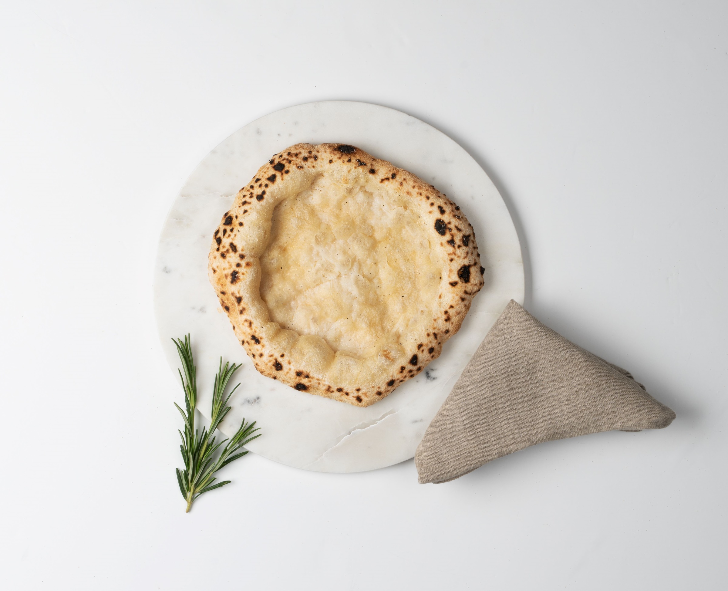 Pizza Bianca er pizzaens svar på det hvide lærred, hvor du får mulighed for at smage dejen og udforske de mere moderne hvide pizzaopskrifter. Smør den f.eks. med mascarpone ost og ultratynde skiver kartoffel, lidt frisk rosmarin og et drys parmesan til en kartoffelpizza, eller smør bunden med ricotta, fordel stykker af pancetta og giv den et godt drys sort peber.