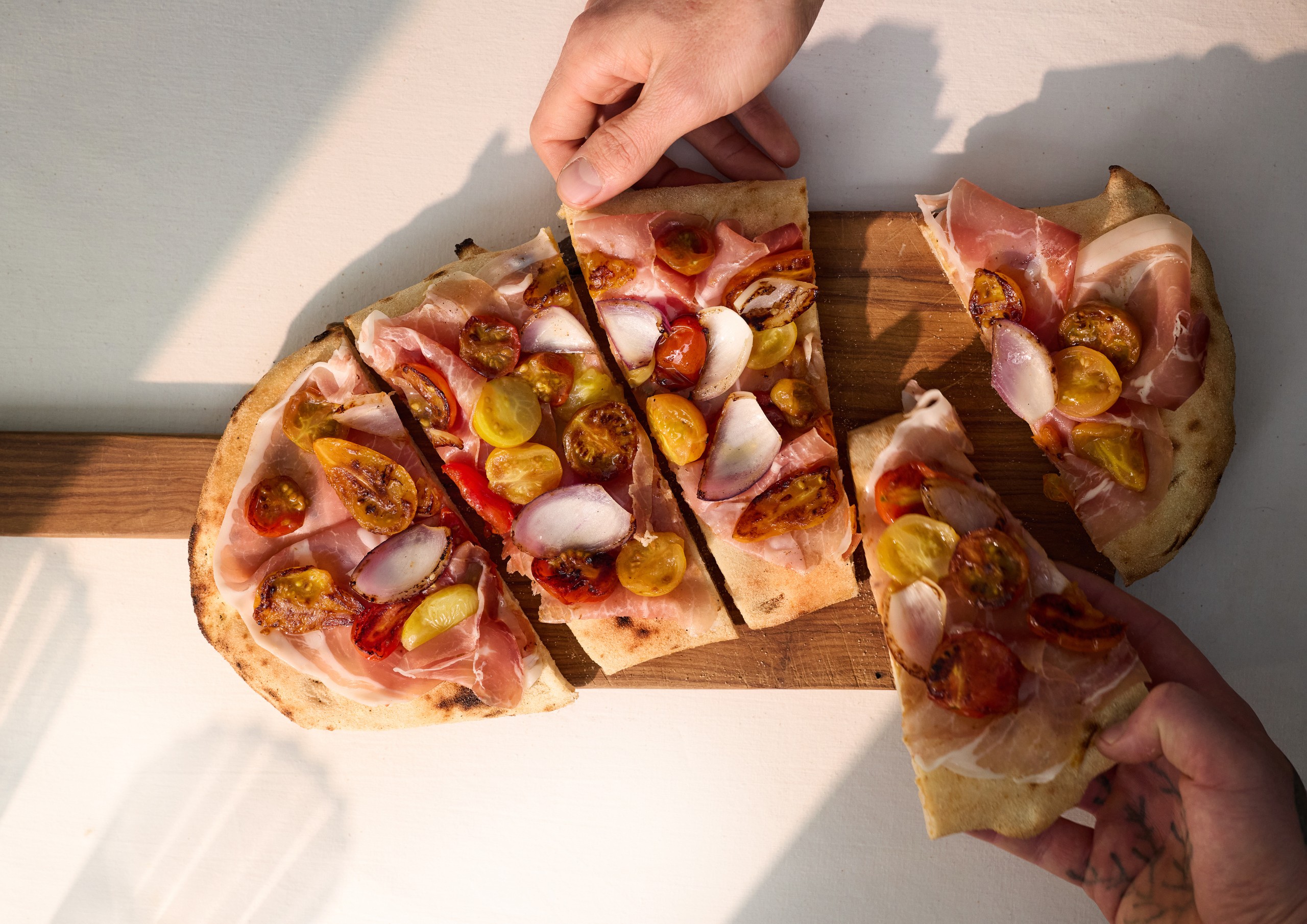 Vores italienske pinsa er alsidig og kan bruges til flere måltider: