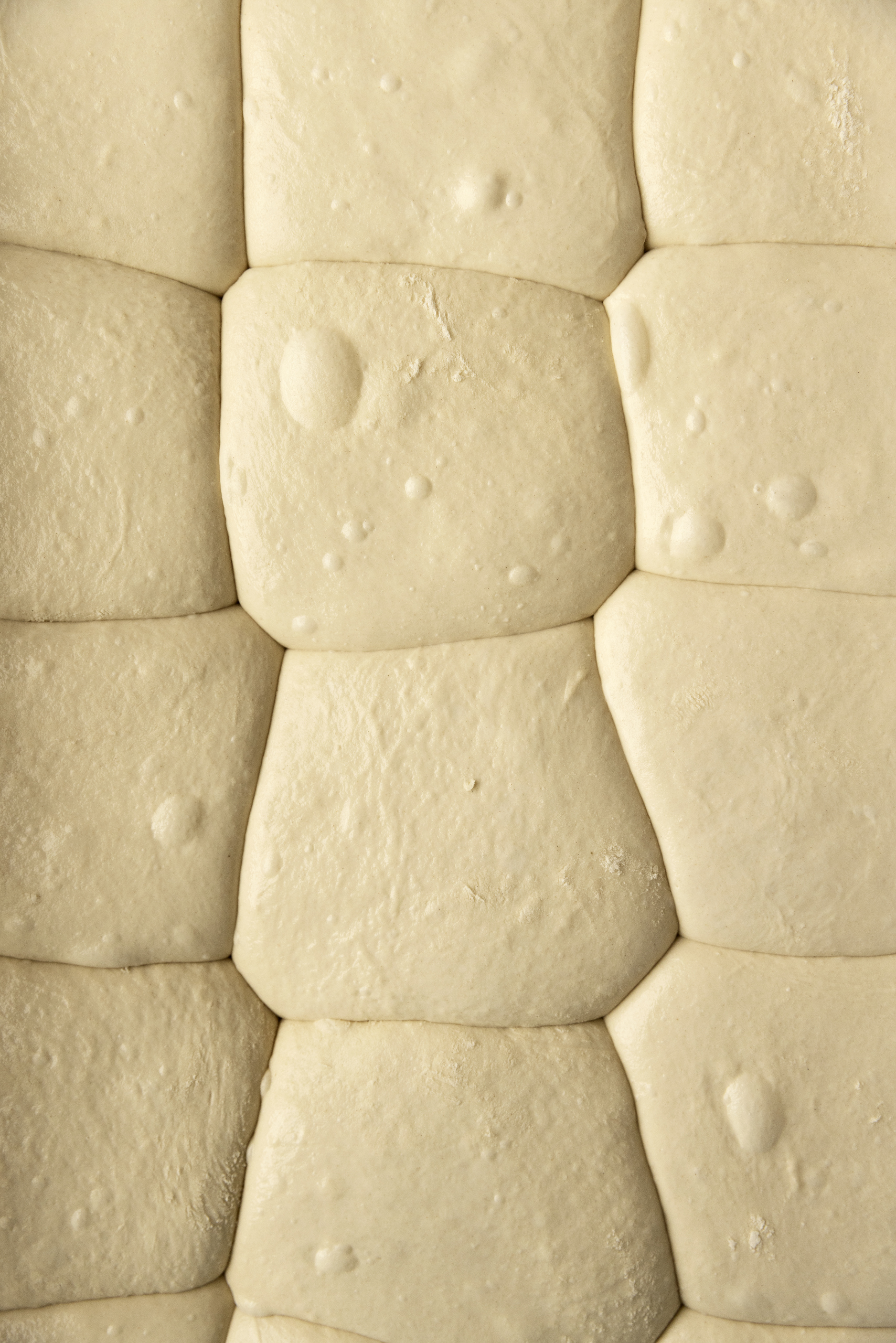 Hvis dejen føles blød eller klistrer, kan hænderne fugtes let med vand. Det stærke glutennetværk gør dejen smidig og robust og gør den velegnet til at blive strakt til pizza.